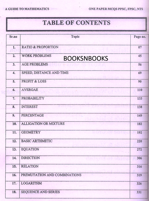 π Title Name: A Guide To Mathematics For PPSC FPSC NTS and other One Paper Examination 4th Edition