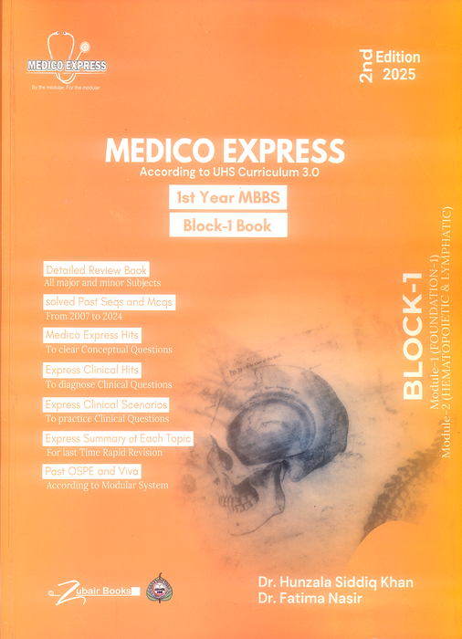 Tags: 1st Year MBBS , 1st Year MBBS Foundation Module , best book for MBBS students , best study material for MBBS students , Block 1 , Block 1 Medico Express MBBS , Block 1 study resource , blood disorders and immune system , clinical pathology and hematology , comprehensive guide for medical foundation , essential book for MBBS Block 1 , exam preparation for MBBS 1st year , Fatima Nasir MBBS guide , first-year MBBS recommended book , hematology and immunology book , hematopoietic system study guide , human physiology and anatomy , Hunzala Siddiq Khan medical book , immune system and disease pathology , integrated medical curriculum book , key medical topics for MBBS 1st year , lymphatic system MBBS book , MBBS Block 1 book , medical case studies and MCQs , medical concepts and pathology , medical concepts for first-year students , medical foundation textbook , medical modular system book , medical school exam reference , medical sciences foundation book , medical university textbook , Medico Express , modular curriculum Block 1 book , Module 1 Foundation 1 book , Module 2 Hematopoietic & Lymphatic book , Pakistan MBBS syllabus book , pathology and physiology for medical students , professional MBBS textbooks , structured MBBS syllabus guide , university exam preparation for MBBS