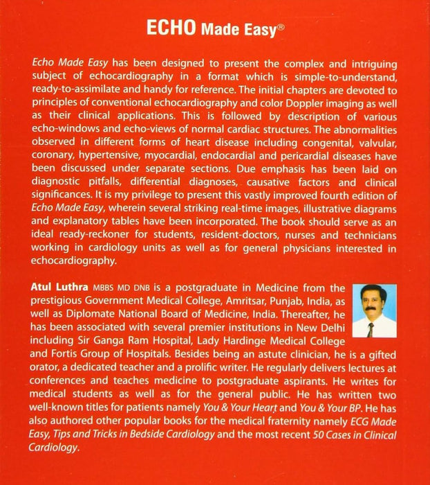 Echo Made Easy by Atul Luthra is a concise and practical guide to echocardiography, covering essential concepts and techniques in a simplified manner. It is designed for medical students, cardiologists, and healthcare professionals seeking to master echocardiographic assessment.