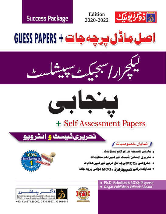 The Lecturer / Subject Specialist Punjabi Solved Papers by Shahid Mahmood Dogar offers a complete and structured approach to preparing for Punjabi language exams. The inclusion of solved past papers, model questions, and practical tips for exams makes this guide invaluable for aspiring lecturers and subject specialists.