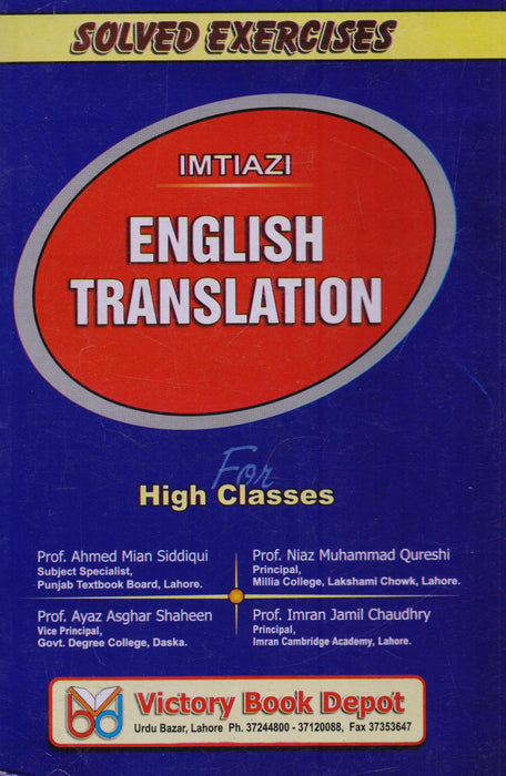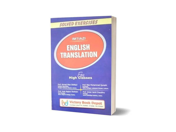 This comprehensive book, "Imtiazi English Translation (Solved Exercises) For High Classes" by Prof Ahmad Mian Siddiqui, is meticulously designed to cater to the needs of advanced learners aiming to master the art of English translation. The book offers an extensive collection of solved exercises that provide students with practical insights and step-by-step solutions to complex translation problems. Prof Siddiqui, an esteemed educator with years of experience, has crafted this guide to not only enhance the translation skills of high school and college students but also to build a strong foundation in English grammar and usage.