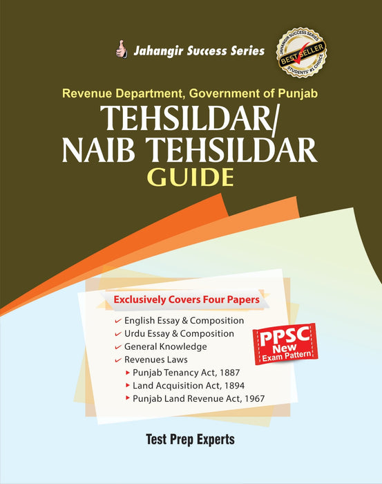 The "Tehsildar/Naib Tehsildar Guide PPSC" by Jahangir's World Times (JWT) is a specialized resource tailored for candidates preparing for the Punjab Public Service Commission (PPSC) examinations for the positions of Tehsildar and Naib Tehsildar. This guide is designed to provide comprehensive coverage of the key subjects and laws relevant to the exams, ensuring that candidates are well-prepared for all aspects of the test. It focuses on four main areas: English Essay and Composition, Urdu Essay and Composition, General Knowledge, and Revenue Laws. The book includes detailed information and practice materials on essential revenue laws, such as the Punjab Tenancy Act, 1887, the Land Acquisition Act, 1894, and the Punjab Land Revenue Act, 1967, making it an indispensable tool for aspirants.