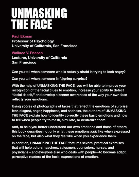 Unmasking the Face is an essential book for anyone interested in improving emotional intelligence, communication, and the ability to read people with accuracy.