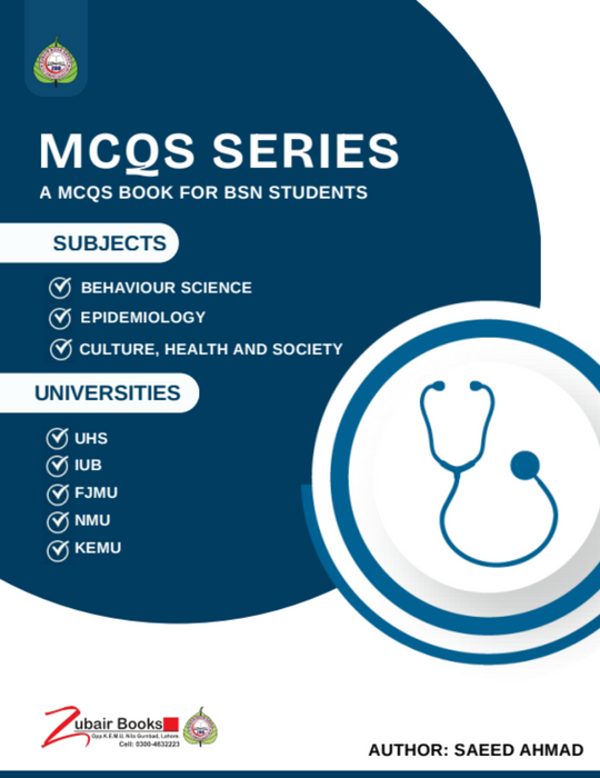 Tags: academic MCQs book , applied nursing MCQs , Behaviour Science , Behaviour Science exam guide , Behaviour Science MCQs , best books , Best Price , Best Selling Books , BSN exam preparation , BSN MCQs , BSN MCQs Series , BSN MCQs Series Behaviour Science , BSN MCQs Series Culture Health And Society , BSN MCQs Series Epidemiology , BSN multiple-choice questions , BSN self-assessment , BSN study guide , chapter MCQs collection , chapter-wise MCQs , Culture Health And Society , Culture Health Society guide , Culture Health Society MCQs , Epidemiology , Epidemiology exam guide , Epidemiology MCQs , FJMU MCQs , health science MCQs , IUB nursing MCQs , KEMU MCQs , MCQs for BSN students , MCQs reference book , NMU MCQs , nursing concepts Pakistan , nursing education Pakistan , nursing exam MCQs , Nursing MCQs Pakistan , nursing students Pakistan , nursing test preparation , Online Bookshop , past papers MCQs , Saeed Ahmad , scenario-based MCQs , UHS BSN preparation , UHS MCQs , UHS recommended textbooks , Zubair Book Depot