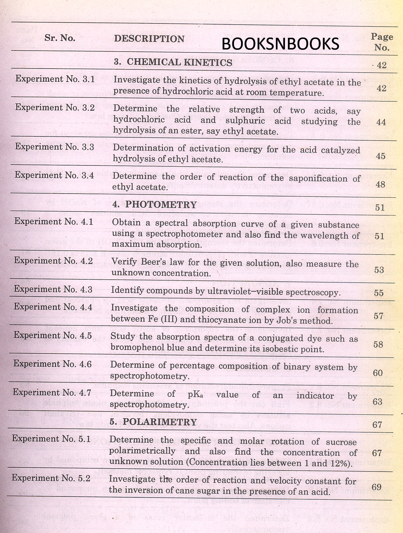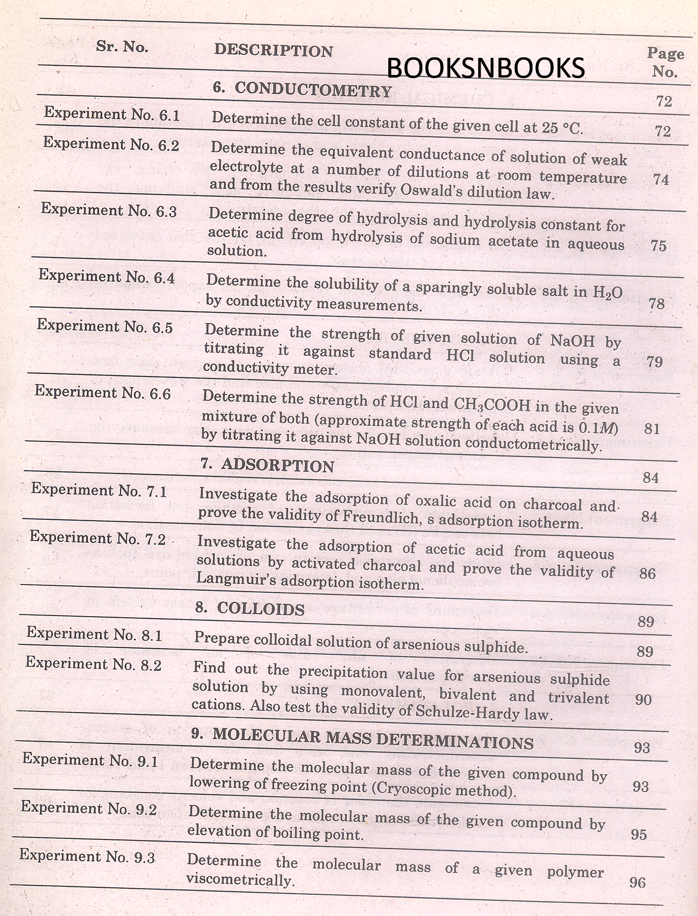 Covers essential physical chemistry experiments prescribed in B.Sc and BS 4-year curricula.