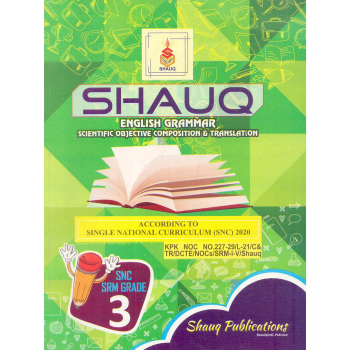 The Shauq English Grammar, Composition & Translation book by Shauq Publisher is an invaluable resource for students from Grade 1 to 8. It offers a structured and comprehensive approach to learning English, aligning with the new scheme of studies. With its focus on grammar, composition, and translation, it provides students with the tools they need to develop strong language skills and succeed academically.