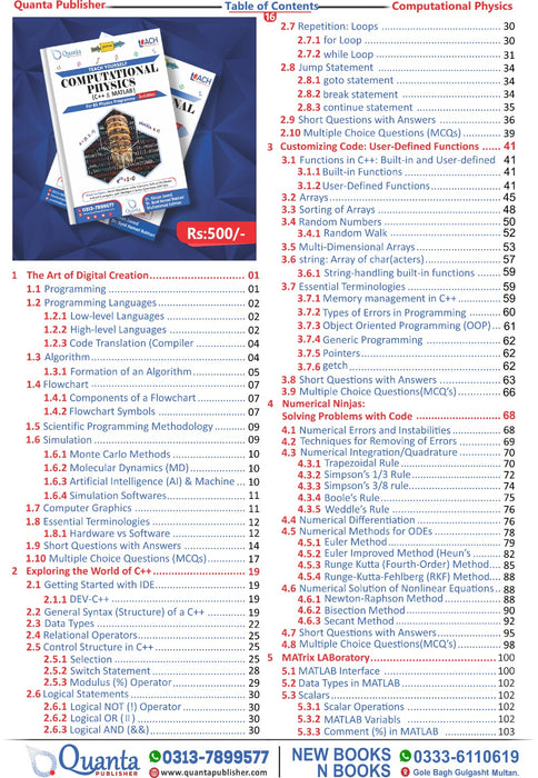 Tags: Ahsan Javad , C++ , Computational Methods , Computational Physics , Computational Physics Guide , Computational Physics Textbook , MATLAB , MSc Physics , Numerical Methods , Physics Coding , Physics Concepts , Physics Education , Physics Exams Prep , Physics Exercises , Physics Programming , Physics Questions and Answers , Physics with C++ , Physics with MATLAB , Problem Solving in Physics , Programming for Physics , Quanta , Quanta Publishers , Scientific Computing , Self Study Physics , Simulation in Physics , Solved Problems , Syed Hamad Bukari , Teach Yourself