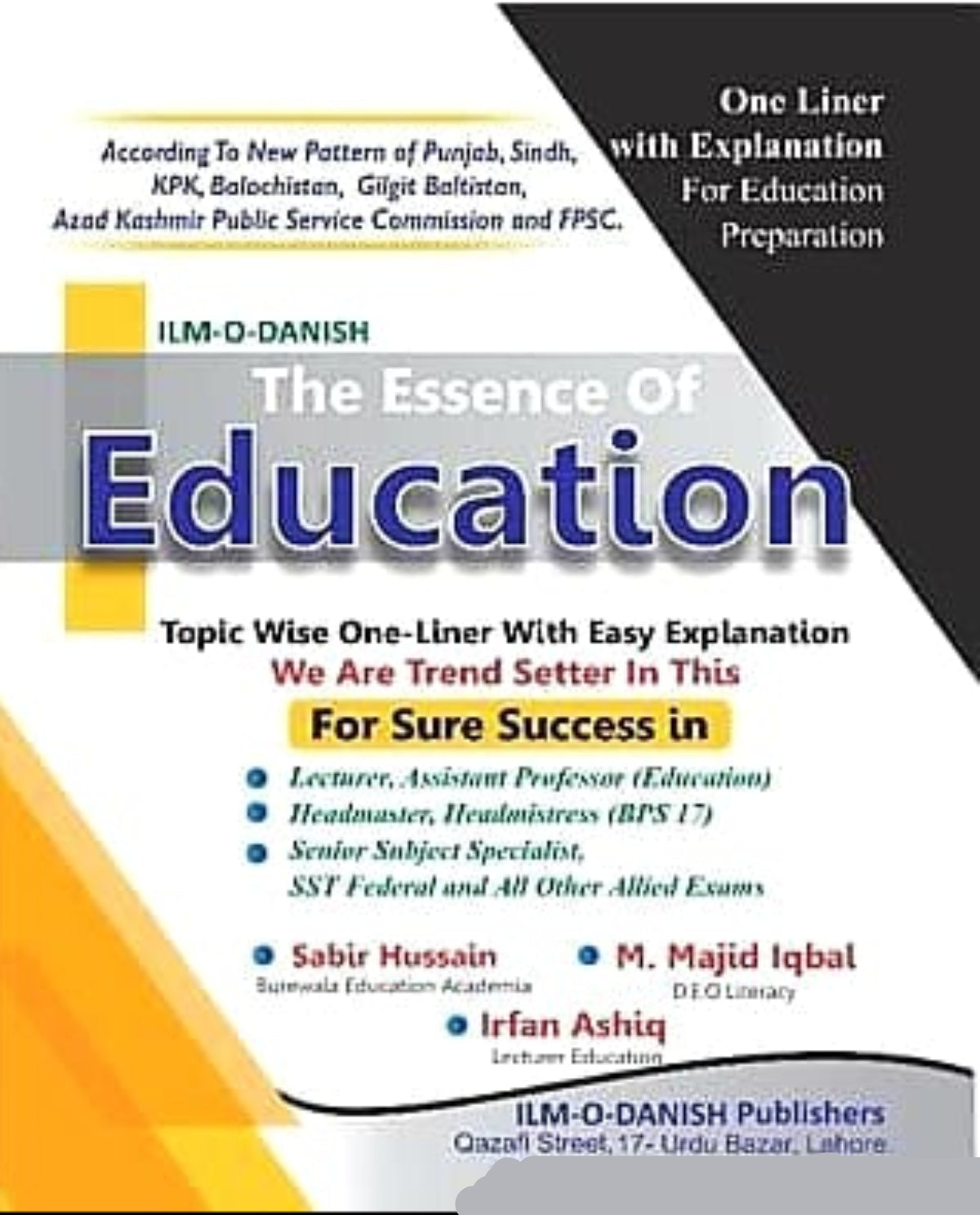 Tags: AJK education exams , assistant professor education book , best books , Best Selling Books , BPSC headmaster guide , BPSC SST book , curriculum instruction MCQs , easy education one liners , education for competitive exams , education guide for BPS 17 , education job test book , education MCQs with explanation , education one-liners , education paper preparation , education theory MCQs , educational psychology MCQs , educational testing book , exam-oriented education guide , federal lecturer test preparation , FPSC education preparation , FPSC SST book , Gilgit Baltistan education tests , headmistress preparation book , ILM-O-DANISH PUBLISHERS , Irfan Ashi , KPK education lecturer book , lecturer education guide , Muhammad Majid Iqbal , Online Bookshop , pedagogy one liners , philosophy of education guide , PPSC education book , PPSC headmaster guide , public commission education syllabus , public service commission education guide , Sabir Hussain , senior subject specialist education , Sindh PSC education , solved education MCQs , SST education preparation , subject specialist MCQs , test prep for lecturers , The Essence of Education , topic-wise education MCQs