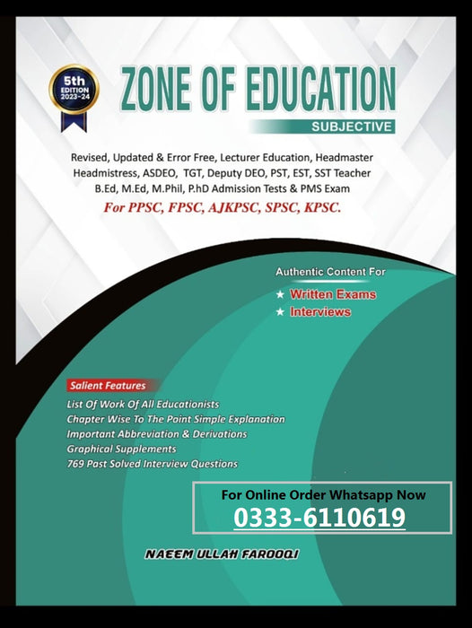 Tags: 11 Practice Tests , 19 Model Papers , 60 Past Papers , 8900 One Line Questions , Academic Leadership Test , Advanced Education Test , AJKPSC Education Test , AJKPSC Test Book , ASDEO Test Preparation , Azad Jammu & Kashmir Public Service Commission , B.Ed Admission Test , B.Ed Test Book , Basic Education Principles , Best Book for Teaching Exams , best books , Best Price , Best Selling Books , Competitive Exam Book , Competitive Exam Education , Deputy DEO Guide , Education Abbreviations , Education Book , Education Facts and Figures , Education Graphical Supplements , Education Key Concepts , Education Key Terms , Education Model Papers , Education Objective Book , Education Past Papers , Education Policy Questions , Education Subjective Book , Education Theories , Education Theories MCQs , Educational Assessment Guide. , Educational Policies , Educational Psychology , Educational Reforms MCQs , Educationist Theories , Educationist Work List , Educationists Contributions , Error-Free Education Guide , EST Exam Book , Federal Public Service Commission , FPSC Education Guide , FPSC Exam Guide , General Knowledge for Teachers , Government Teacher Exam , Government Teaching Jobs , Headmaster Exam Guide , Headmaster Headmistress Exam , Khyber Pakhtunkhwa Public Service Commission , KPSC Education Guide , KPSC Exam Preparation , Latest Education Book , Lecturer Education Book , Lecturer Test Guide , Lecturer Test Preparation , M.Ed Admission Guide , M.Ed Test Guide , M.Phil Education Book , M.Phil Education Test , Naeem Ullah Farooqi , Objective Education MCQs , One Liner Questions , ONLINE BOOKS , Online Bookshop , Pakistan Public Service Commission , Past Interview Questions , Pedagogy Test Guide , PhD Admission Test , PhD Education Guide , PPSC Education MCQs , Professional Teaching Exam , PST Exam Preparation , Scholars Key Works , School Administration Test , School Curriculum Guide , School Education MCQs , School Leadership Test , School System Guide , Simplified Education Notes , Sindh Public Service Commission , Solved Papers Book , SPSC Education Guide , SPSC Exam Book , SST Teacher Test , Subjective Education Book , Teacher Exam MCQs , Teacher Recruitment Test , Teacher Selection Test , Teaching Aptitude Test , Teaching Exam Guide , Teaching Exams MCQs , Teaching Exams Pakistan , Teaching Interview Guide , Teaching Recruitment Guide , Teaching Test Preparation , TGT Exam Book , Word Origins in Education , Zone of Education , Zone of Education Book , Zone of Education by Naeem Ullah Farooqi , Zone of Education Objective , Zone Of Education Objective 6th Edition , Zone of Education Subjective , Zone Of Education Subjective 5th Edition
