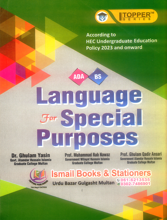 Topper Series โ Language for Special Purposes (LSP) is a structured academic textbook developed for ADA and BS undergraduate programs in accordance with the HEC Undergraduate Policy. The book focuses on developing professional, academic, and discipline-specific communication skills required in modern higher education and workplace environments. It emphasizes practical language use tailored to studentsโ fields of study.
