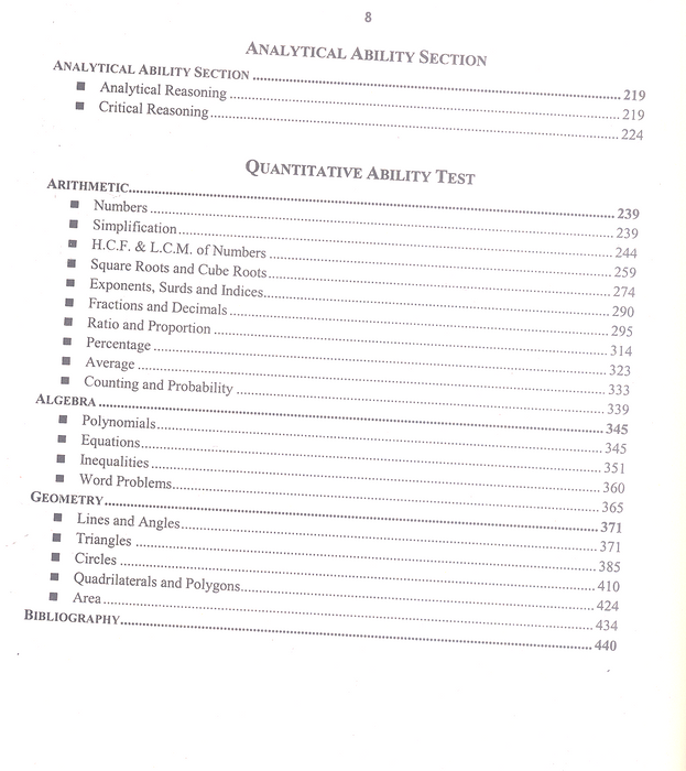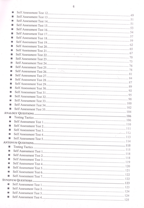Detailed coverage of Verbal, Quantitative, and Analytical Ability sections.
