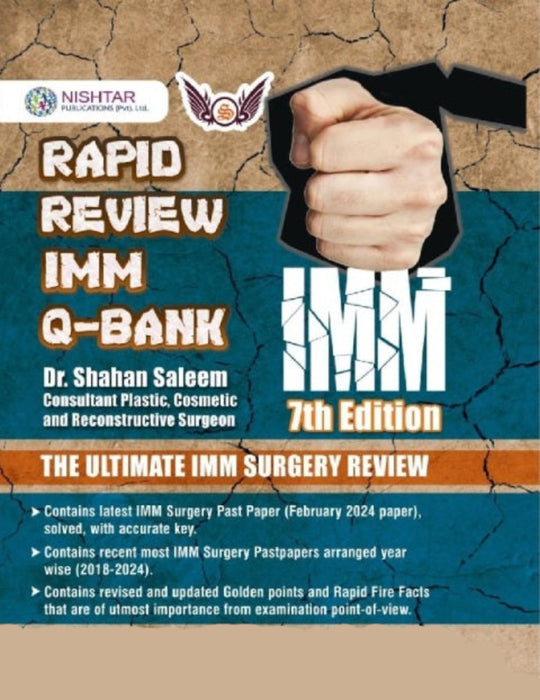 "Nishtar Rapid Review IMM Q-Bank: The Ultimate IMM Surgery Review 7th Edition" by Dr. Shahan Saleem is an indispensable resource for medical professionals preparing for IMM surgery examinations. With its focus on recent past papers, golden points, and expert insights, this edition equips candidates with the knowledge and skills necessary to excel in their exams and clinical practice.