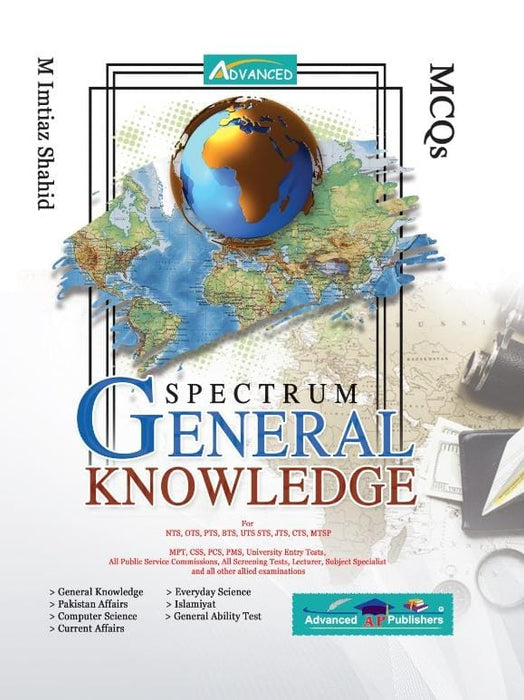 "Advanced Spectrum General Knowledge MCQs" by M. Imtiaz Shahid is a comprehensive resource designed for candidates preparing for a wide range of competitive exams including NTS, OTS, PTS, BTS, UTS, STS, JTS, CTS, MTSP, MPT, CSS, PCS, PMS, university entry tests, all public service commissions, all screening tests, lectures, subject specialist positions, and other allied examinations.