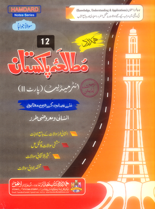 Hamdard Notes Mutala Pakistan for Intermediate Part II (Class 12) is a complete study guide designed according to the latest syllabus. This edition combines subjective and objective formats, providing students with a balanced approach to mastering Mutala Pakistan. With comprehensive answers, solved exercises, and updated MCQs, it ensures thorough preparation for both board exams and conceptual understanding.