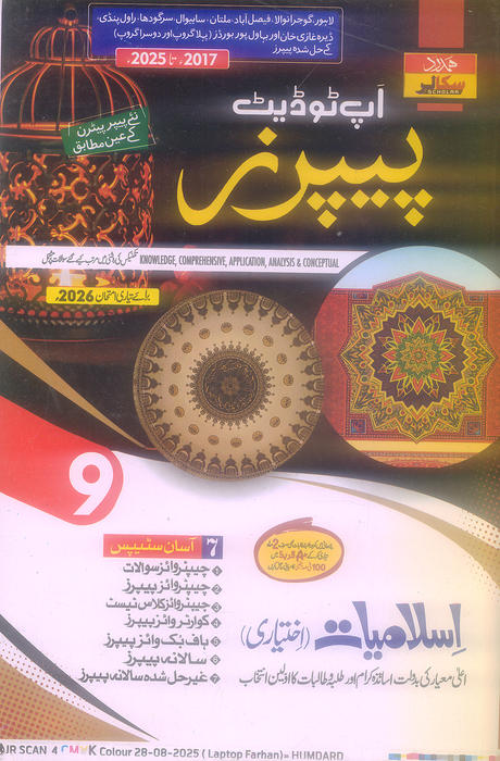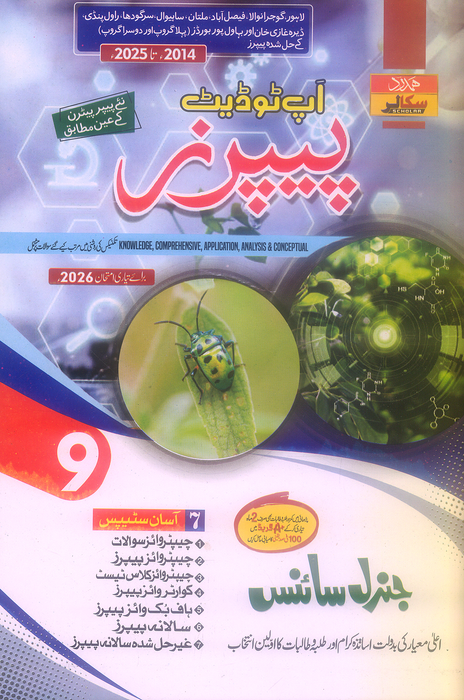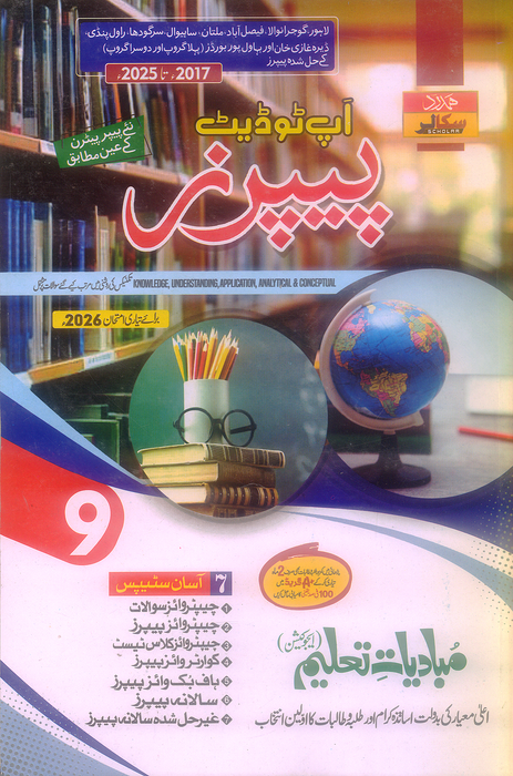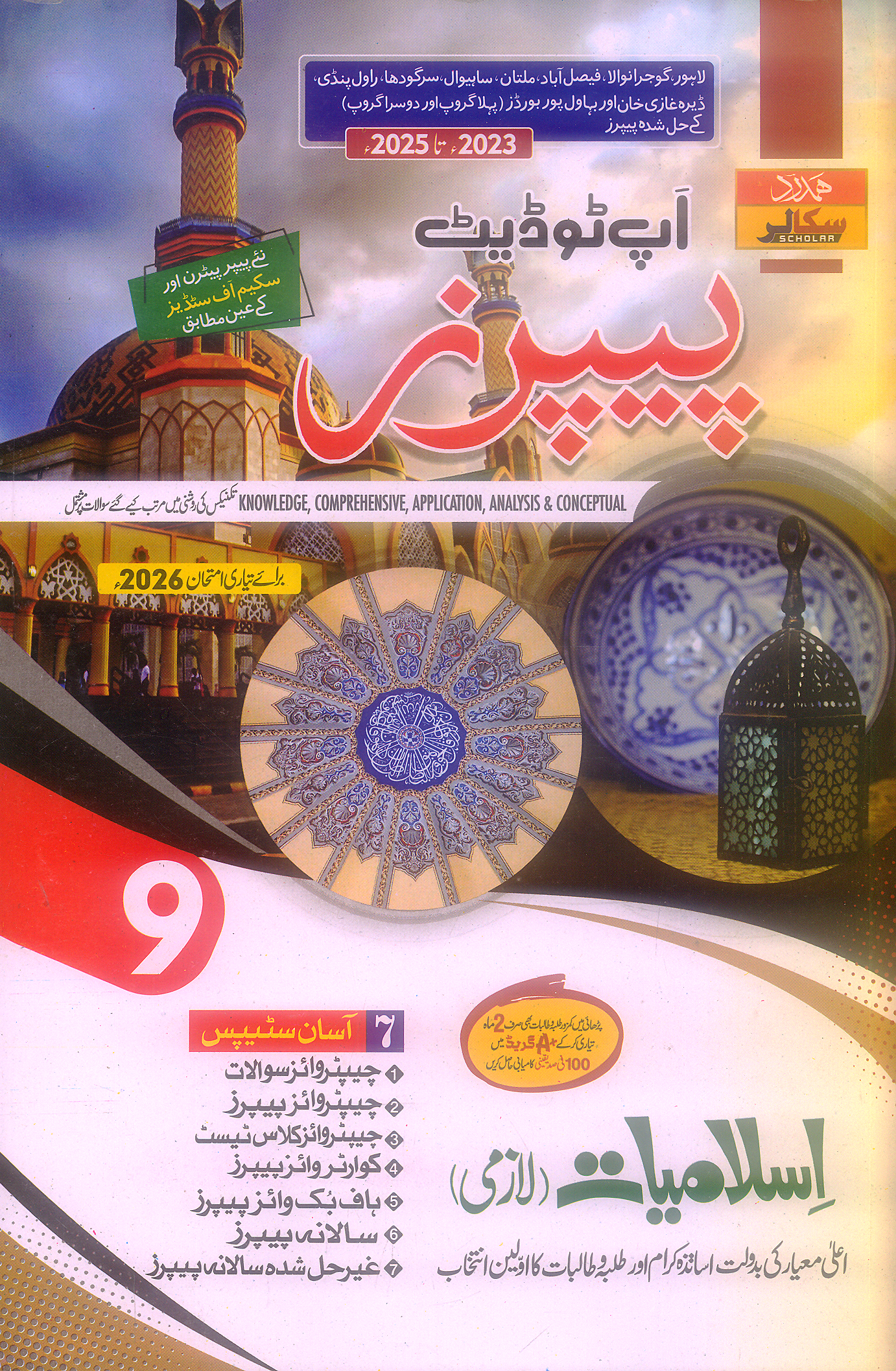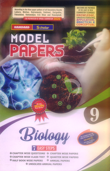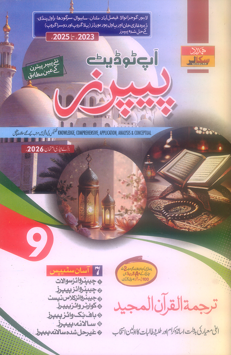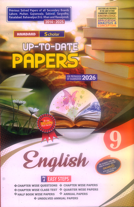 Hamdard Scholar Up-To-Date Past Papers 9th Class.This comprehensive guide offers chapter-wise solutions to MCQs, short questions, and extensive questions, including expected exam questions with detailed answers. It features solved past papers from all 9 Punjab Boards (First and Second Group), along with practice papers for chapter-wise, half-book, and full-book assessments. The up-to-date content ensures accurate, effective, and easy-to-understand methods for self-assessment. Recommended for all boards across Punjab, including Bahawalpur, D.G. Khan, Faisalabad, Gujranwala, Lahore, Rawalpindi, Multan, Sargodha, Sahiwal, and Azad Kashmir.