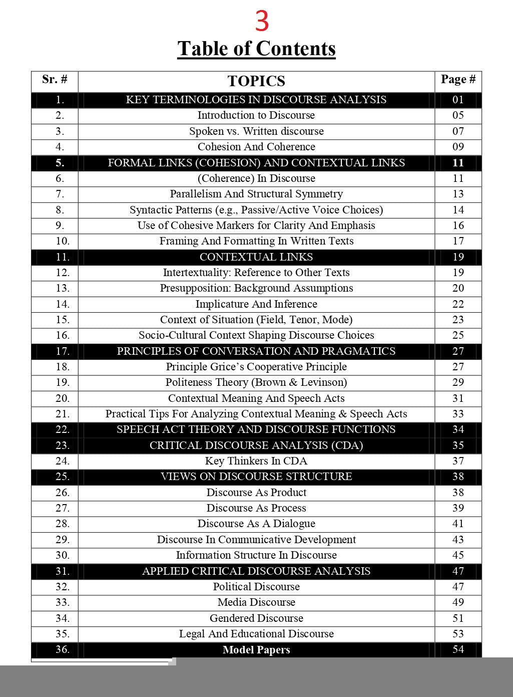 This book is an essential resource for BS English students, equipping them with both theoretical knowledge and analytical tools to study language in context. With comprehensive coverage of discourse theories and applied analysis, it prepares students for academic success and critical understanding of communication.