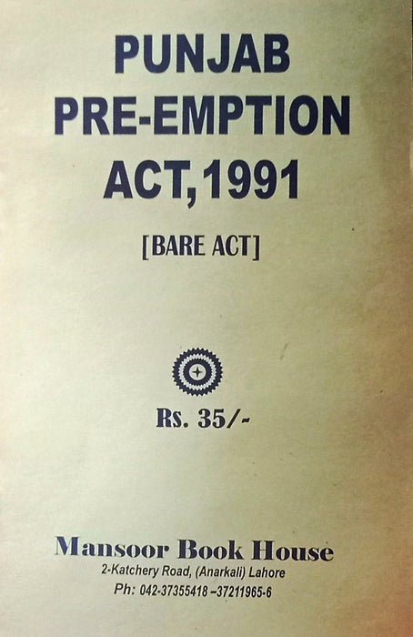 Tags: Amendments , Civil Law , Court Cases , Judiciary Exam , Land Ownership , Law Book , Law Students , Lawyers , Legal Interpretation , Legal Research , Legal Studies , Legal Text , MBH Punjab Pre-Emption Act 1991 , MBH Punjab PRE-Emption Act 1991 Bare Act , Pre-Emption Law , Property Law , Property Rights , Punjab Law , Punjab PRE-Emption Act , Real Estate Law , Statutory Law