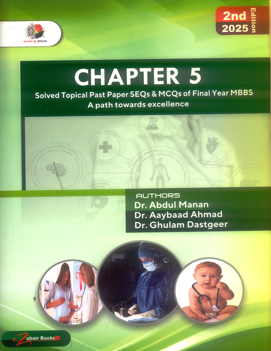 "Chapter 5 Solved Topical Past Papers SEQS And Mcqs of Final Year MBBS 2nd Edition " by Dr Abdul Manan, Dr. Aaybaad Ahmad, and Dr. Ghulam Dastageer from ZUBAIR BOOK DEPOT offers a comprehensive resource tailored for final year MBBS students. Spanning from 2007 to 2024, this book meticulously solves past SEQs and MCQs topic-wise, ensuring a thorough grasp of exam content. Each chapter is dissected with diagnostic clues and crucial clinical points presented in concise side-boxes, enhancing understanding and retention. Notably, the text includes notes on topics deemed crucial yet absent from UHS exams, accompanied by relevant clinical scenarios, enriching the learning experience beyond standard curricula.