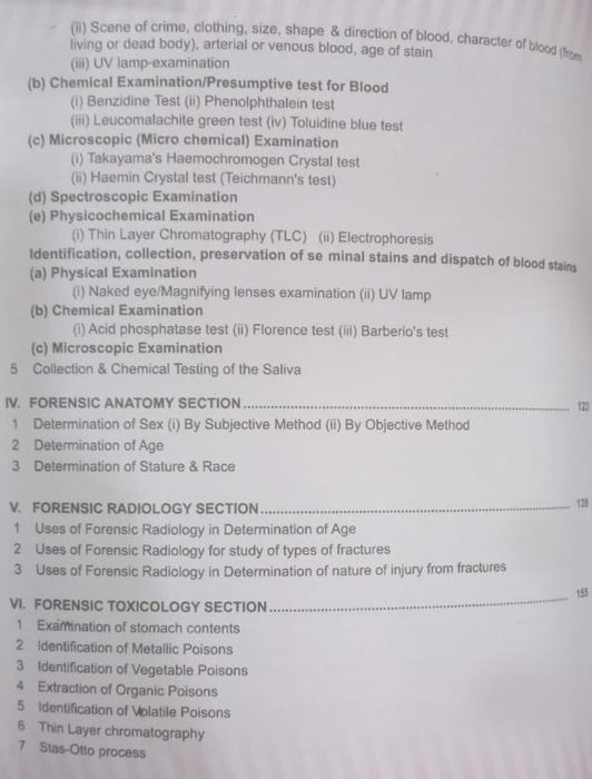 The book covers essential topics in forensic pathology and toxicology, including autopsy techniques, poison identification, and toxicological analysis, ensuring students gain expertise in these areas. -