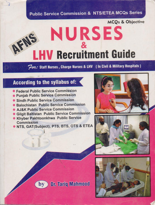 Nurses and LHV Recruitment Guide MCQs & Objective by Dr. Tariq Mehmood is a comprehensive preparatory resource tailored for individuals pursuing recruitment as Staff Nurses, Charge Nurses, and LHVs in civil and military hospitals. This guide aligns with the syllabi of multiple Public Service Commissions (FPSC, PPSC, SPSC, BPSC, AJKPSC, GBPSC, and KPPSC) and testing agencies like NTS, GAT (Subject), PTS, BTS, OTS, and ETEA. It covers a broad spectrum of nursing-related topics through meticulously crafted MCQs and objective questions. This book is designed to support candidates in mastering the concepts, enhancing test-taking skills, and securing top scores in competitive exams.