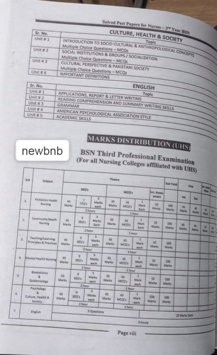 The "NURSE's GUIDE SOLVED PAST PAPERS FOR NURSES" is an essential tool for second-year Generic BS Nursing students. With its comprehensive coverage of over 2000 MCQs, solved past papers, and detailed explanations, it provides a robust framework for exam preparation. The inclusion of graphical illustrations, updated terminologies, and strategic paper-attempting techniques further enhances its utility. By offering targeted unit-wise questions and guidance tailored for third-year BSN students, this guide stands out as a reliable and effective resource for achieving academic success in nursing.