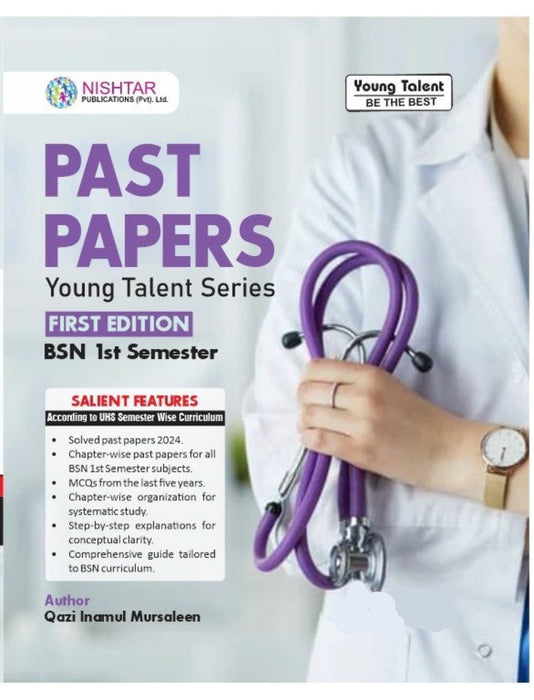 Past Papers (Young Talent Series) For BSN 1st Semester (1st Edition) is an essential companion for nursing students striving for academic success. With solved past papers, structured chapter-wise organization, and comprehensive explanations, this book ensures a thorough and effective revision process. Whether used for self-study or exam preparation, it is an invaluable resource for achieving top scores in BSN 1st-semester exams.