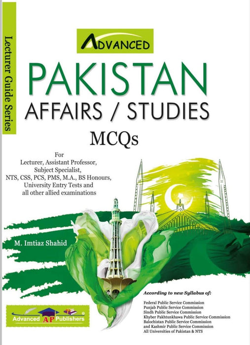 "Advanced Pakistan Affairs Studies MCQs for CSS PMS PCS" by Imtiaz Shahid is an essential guide for anyone looking to excel in competitive exams focused on Pakistan Affairs. Its comprehensive collection of MCQs and detailed explanations provide a robust foundation for mastering the subject. This book is an invaluable asset for effective exam preparation, helping candidates to achieve their desired scores and succeed in CSS, PMS, and PCS examinations.