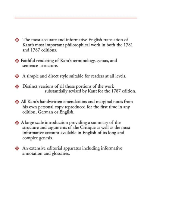This edition not only includes a faithful translation but also offers an insightful introduction and extensive notes that elucidate the complex arguments presented by Kant. It contextualizes the "Critique of Pure Reason" within the broader framework of Kant's philosophical project and the Enlightenment era. The editors' contributions make this version an invaluable resource for students, scholars, and anyone interested in exploring the foundations of metaphysics and epistemology. The combination of Kant's profound insights and the editors' scholarly expertise makes this volume an essential addition to any philosophical library.