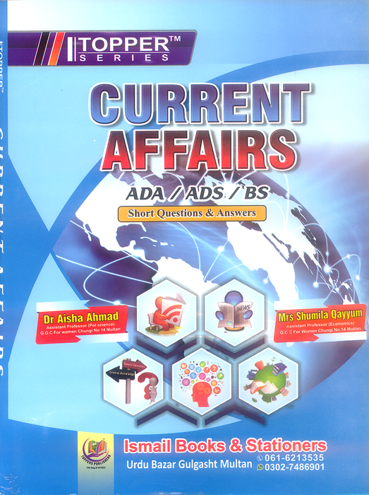 The Topper Series: Current Affairs book is designed for students of BS, ADP, ADA, and ADS programs. The book aims to provide a comprehensive understanding of current affairs and equips students with concise answers to short questions, which are common in exams related to current events and general knowledge.