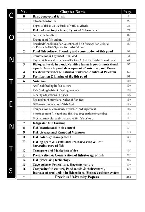 • The book covers all aspects of fish farming, including types of fish, aquaculture techniques, pond management, and water quality control.