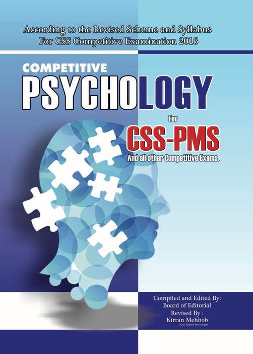 "Competitive Psychology for CSS PMS" by Kirran Mehboob, published by AH Publishers, is a comprehensive and meticulously crafted resource tailored specifically for candidates preparing for competitive examinations such as the Central Superior Services (CSS) and Provincial Management Services (PMS). This book offers a strategic approach to mastering the intricacies of psychology, providing invaluable insights, concepts, and techniques necessary for success in these highly competitive exams. With its clear explanations, insightful analyses, and practical applications, this book serves as an essential tool for aspirants seeking to excel in the psychology component of competitive exams.