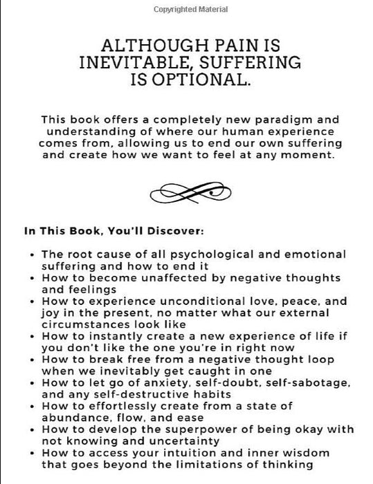 The Nature of Suffering: The text explores the concept that suffering often begins with our thoughts and provides insights into how this suffering can be alleviated.