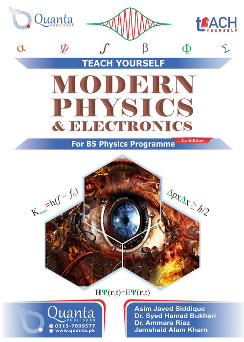 "Teach Yourself Modern Physics & Electronics" 3rd Edition by Asim Javed Siddiqui, Dr. Syed Hamad Bukhari, Dr. Ammara Riaz, and Jamshaid Alam Khan is a comprehensive guide designed for students and enthusiasts seeking to understand the core concepts of modern physics and electronics. This edition has been meticulously updated to include the latest advancements and practical applications in these fields. The book covers a broad range of topics, from fundamental principles to more advanced theories, making it suitable for both beginners and those with some prior knowledge. With clear explanations, illustrative diagrams, and practical examples, this guide serves as an essential resource for anyone aiming to master modern physics and electronics.