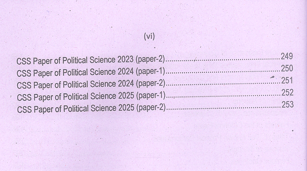 Political Science MCQs (CSS Essentials) is an essential resource for aspirants aiming to strengthen their grip on political science concepts and theories. Its structured approach, solved papers, and exam-oriented content make it a must-have for CSS and PMS candidates who want to achieve excellence through practice.