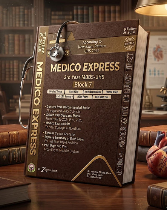 Tags: 3rd Year MBBS , 3rd year MBBS notes , 6000 MCQs MBBS , 6000+ MCQs , best books , best MBBS MCQs book , Best Price , Best Selling Books , Block 07 , Block 7 All on one Book , Block 7 MBBS UHS , Block 7 Medico Express , Block 7 Medico Express 3rd Year MBBS , block wise MBBS , clinical scenario MCQs , conceptual MCQs medical , Dr Eisha Ishaq , Dr Fatima Nasir , Dr Hunzala Siddiq Khan , exam oriented MBBS , integrated medical book , MBBS 3rd year book , MBBS MCQs book , MBBS rapid revision , MBBS revision book , MBBS study material , MBBS theory and MCQs , MCQs pearls MBBS , medical exam guide Pakistan , medical exam success , medical learning objectives , medical past papers solved , medical students guide , medico express all in one , Medico Express Block 7 , Medico Express Block 7 3rd Year MBBS , medico express hits , Online Bookshop , OSPE viva preparation , Pakistan MBBS exams , SEQs MCQs MBBS , UHS 2026 exam preparation , UHS modular system , UHS pattern book , UHS recommended books , Zubair Book Depot