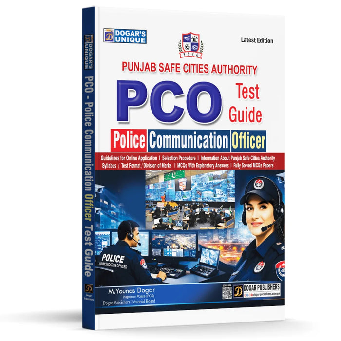 PCO Test Guide – Police Communication Officer by M Younas Dogar is a complete preparation book for candidates applying to Punjab Safe City Authorities. The guide provides detailed information about the selection process, updated syllabus, test format, and fully solved MCQs with explanations to help candidates prepare effectively for the PCO recruitment test.