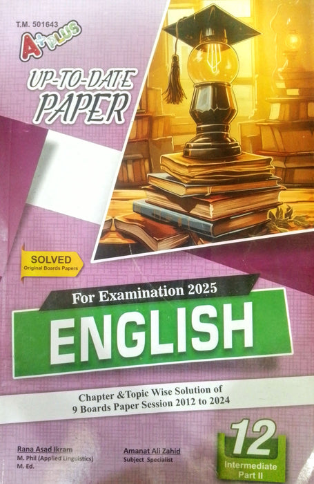 A+ Plus Up-To-Date Past Papers 12th Class.This comprehensive guide offers chapter-wise solutions to MCQs, short questions, and extensive questions, including expected exam questions with detailed answers. It features solved past papers from all 9 Punjab Boards (First and Second Group), along with practice papers for chapter-wise, half-book, and full-book assessments. The up-to-date content ensures accurate, effective, and easy-to-understand methods for self-assessment. Recommended for all boards across Punjab, including Bahawalpur, D.G. Khan, Faisalabad, Gujranwala, Lahore, Rawalpindi, Multan, Sargodha, Sahiwal, and Azad Kashmir.