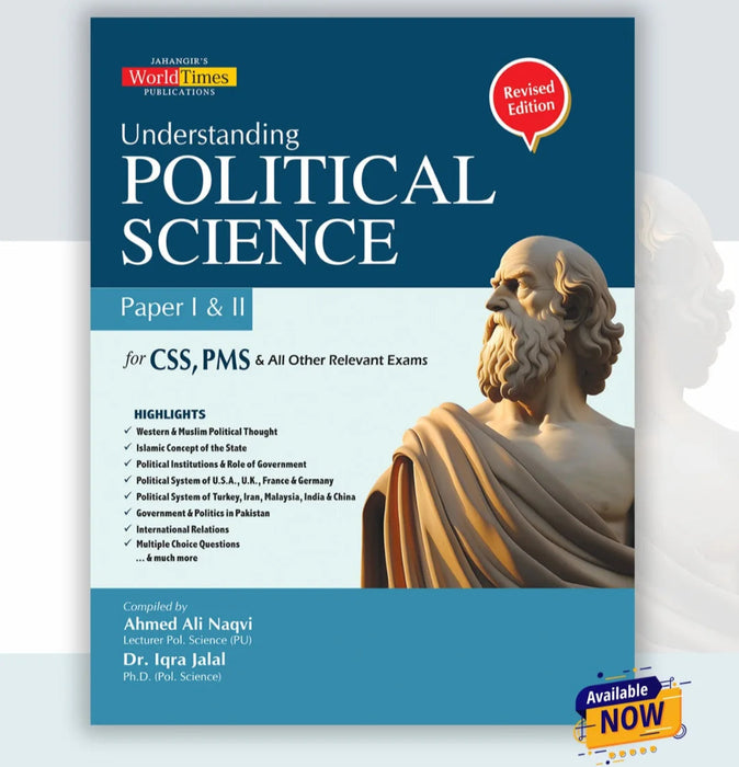 Understanding Political Science Paper I & II for CSS PMS by Ahmad Ali Naqvi and Dr. Iqra Jalal, published by Jahangir's World Times (JWT), is a detailed guide designed to help candidates prepare for the Political Science sections of CSS (Central Superior Services) and PMS (Provincial Management Services) exams. This comprehensive book covers both Paper I and Paper II, offering a thorough analysis of political theory, comparative politics, international relations, and contemporary political issues. The guide aims to provide students with a clear understanding of political science concepts and equip them with the tools needed to excel in their exams.