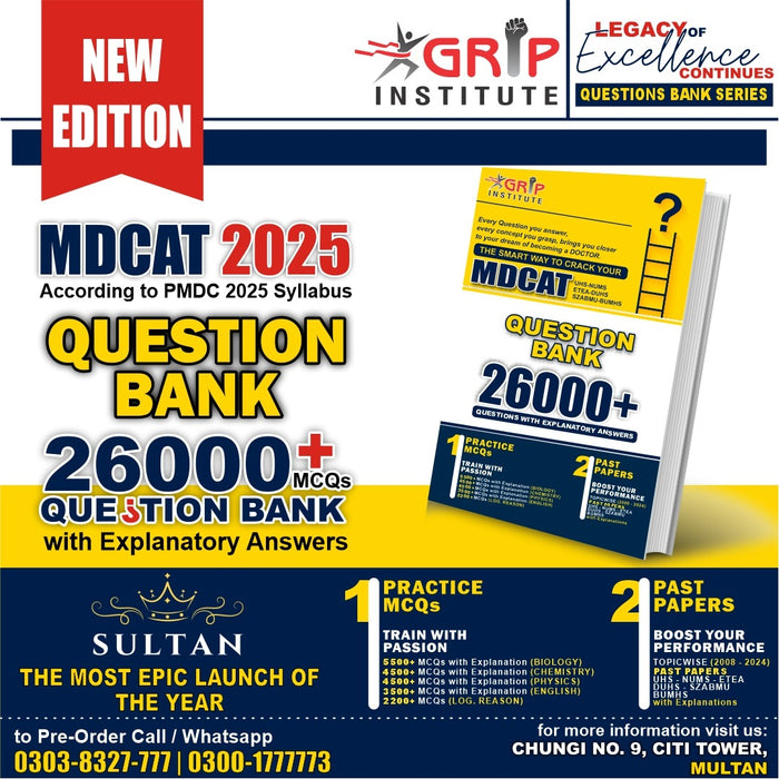 Tags: 2025 , 2025 - 2026 , 26000+ MDCAT questions , best book for MDCAT , best books , Best Price , Best Selling Books , biology MDCAT practice , BUMHS past MCQs , chemistry , chemistry MDCAT questions , DUHS MDCAT questions , English MDCAT prep , ETEA MDCAT prep , GRIP Institute MDCAT , GRIP MDCAT Question Bank , logical reasoning MDCAT , MDCAT 2025 preparation , MDCAT entry test book , MDCAT explanatory answers , MDCAT logical reasoning MCQs , MDCAT MCQs , MDCAT MCQs with solutions , MDCAT past paper solutions , MDCAT practice book , MDCAT previous year questions , MDCAT question bank Pakistan , MDCAT revision book , MDCAT self-assessment , MDCAT smart practice , MDCAT solved papers , MDCAT subject-wise MCQs , MDCAT test preparation book , MDCAT topic-wise MCQs , MDCAT with explanation , medical entry guide , medical entry test Pakistan , NUMS entrance test , Online Bookshop , physics MDCAT MCQs , Pmc National MDCAT , PMDC MDCAT prep , PMDC syllabus MDCAT , Practice MCQs for MDCAT , smart MDCAT preparation , SZABMU entry test guide , UHS MDCAT past papers