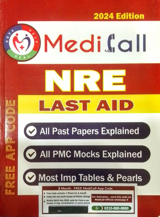 "Medi Call NRE Last Aid 2024" by Zubair Book Depot is a comprehensive resource designed specifically for medical students preparing for the National Registration Exam (NRE). This edition emphasizes a thorough understanding of the exam format and content, offering detailed explanations of all past papers and mocks from the Pakistan Medical Commission (PMC). By systematically breaking down previous exam questions, the guide helps students identify key topics and concepts essential for success in their medical career.