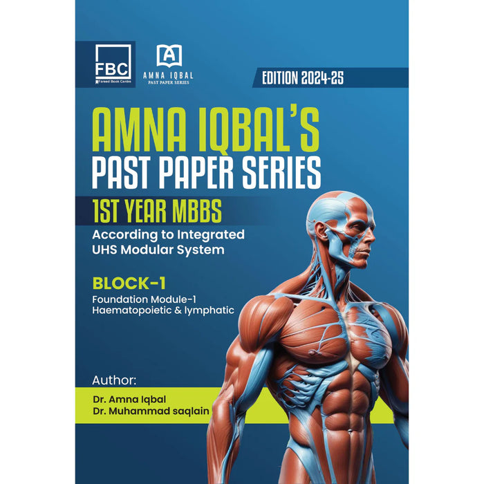 Amna Iqbal's Past Paper Series for 1st Year MBBS (BLOCK I-II-III) by Amna Iqbal & Saqlain is an essential resource for MBBS students. It is specifically designed to assist students in their preparation for professional exams, covering the foundational modules of the first-year curriculum. Published by Fareed Book Center (FCB), the series provides a detailed review of past papers, helping students understand question trends and prepare effectively for their medical journey.