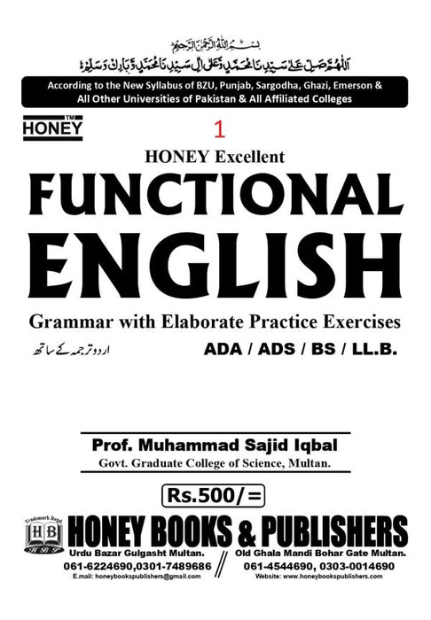 Honey Excellent Functional English For ADA ADS BS LLB by Muhammad Sajid Iqbal