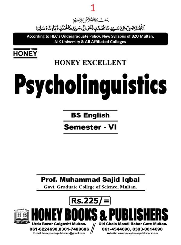 Tags: ADA , ADA English subject , ADA English textbook , ADS , ADS English guide , ADS English preparation , BS , BS English language book , BS English syllabus , BS linguistics , cognitive linguistics , cognitive psychology and language , English degree coursebook , English exam guide , English learning book , English linguistics , HONEY BOOKS AND PUBLISHERS , Honey Excellent Psycholinguistics , Language & Mind , language acquisition , language and psychology , Language Learning , linguistics exam prep , linguistics Pakistan , mental lexicon , Muhammad Sajid Iqbal , Neurolinguistics , Pakistani English textbook , Psycholinguistics , psycholinguistics book Pakistan , psycholinguistics concepts , psycholinguistics explained , psycholinguistics for BS , psycholinguistics for students , psycholinguistics notes , psycholinguistics revision , psycholinguistics with examples , psychology of language , Sajid Iqbal , Semester VI , undergraduate English textbook , University Books , Urdu Explanation , Urdu-English psycholinguistics