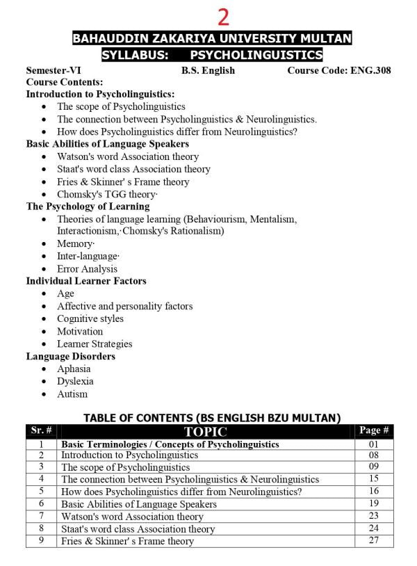 Psycholinguistics (For BS, ADA/ADS)