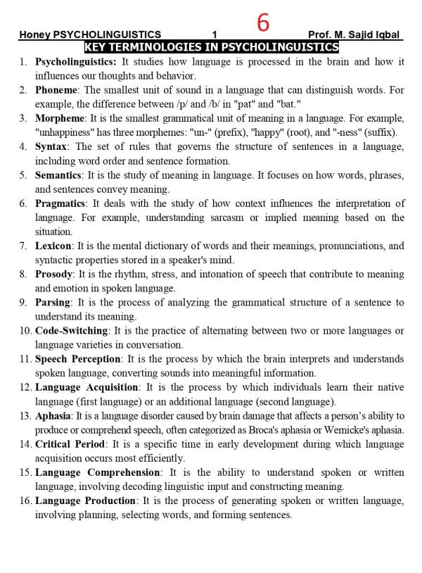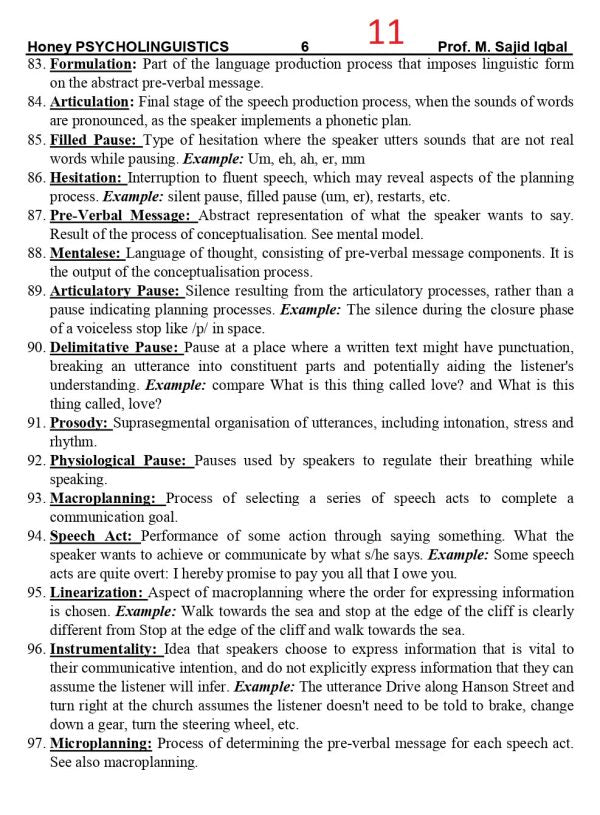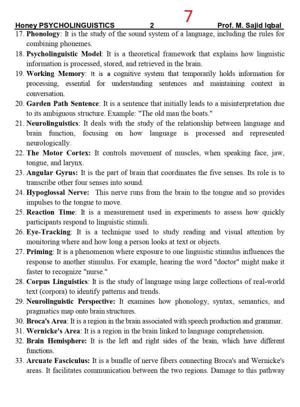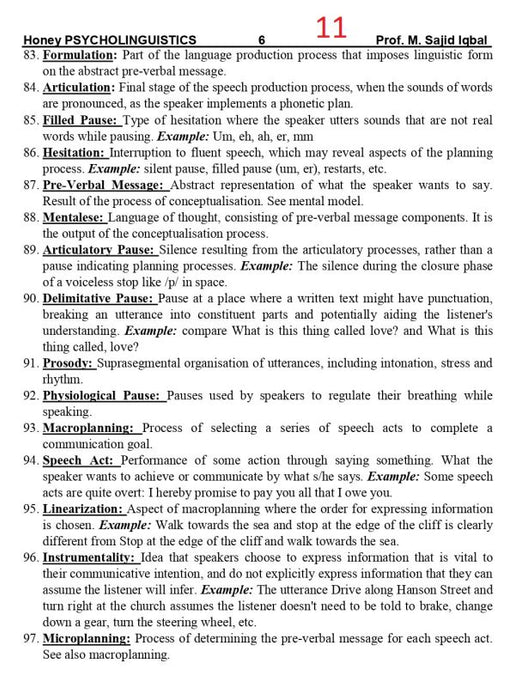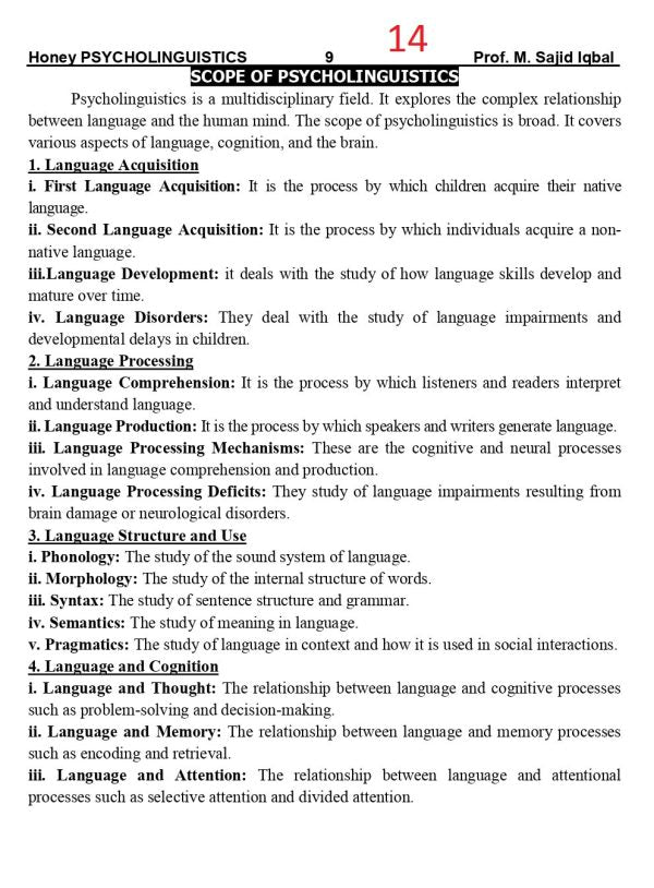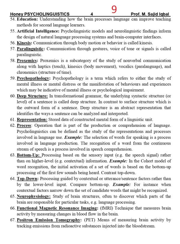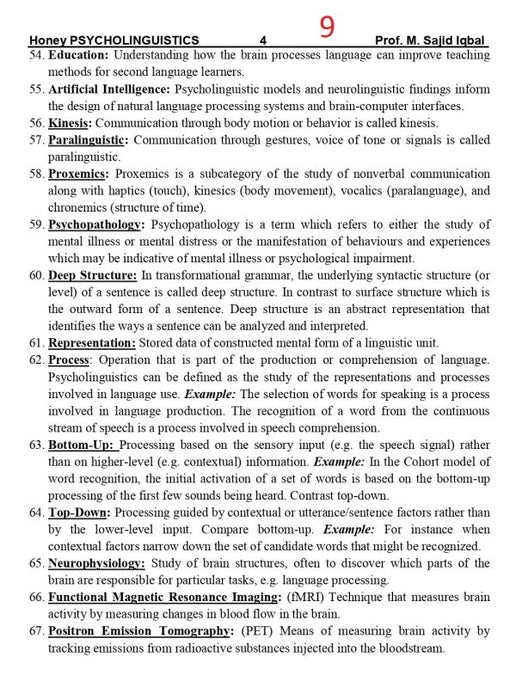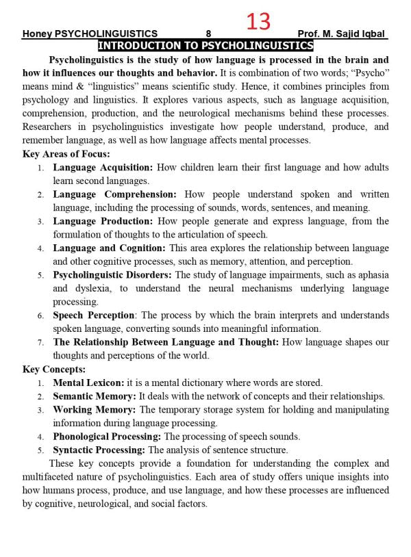 Honey Psycholinguistics for BS ADA/ADS/ by Muhammad Sajid Iqbal