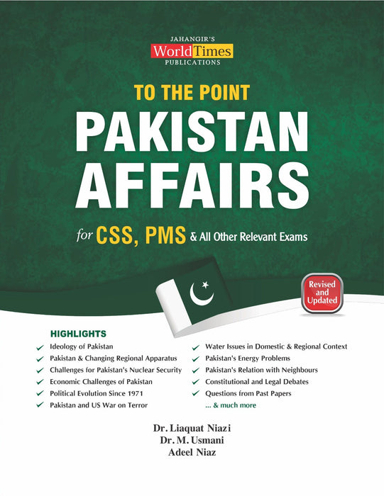 To The Point Pakistan Affairs For CSS PMS PCS by Dr. Liaquat Niazi, Dr. Muhammad Usmani, and Adeel Niaz, published by JWT, is a concise and focused resource designed specifically for candidates preparing for competitive exams such as CSS, PMS, and PCS. This book offers a streamlined approach to studying Pakistan Affairs, covering key topics in a clear and succinct manner. It provides an overview of Pakistan's history, politics, economy, and important national issues, ensuring that candidates are well-prepared to tackle questions related to Pakistan Affairs in their exams. Written by experts in the field, this guide aims to maximize efficiency in study and revision, helping candidates to grasp essential information effectively.