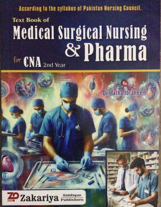 Zp Textbook of Medical Surgical Nursing & Pharma | Pediatric Nursing | CHN & Nutrition For CNA 2nd Year by Dr. Talha Ibraheem is a comprehensive set of three books that cater to the curriculum of the Pakistan Nursing Council for second-year CNA students. Each book focuses on a critical area of nursing education. The first book, Textbook of Medical Surgical Nursing and Pharma, covers foundational knowledge and practices related to medical and surgical care. This book provides in-depth insights into pharmacological interventions, patient care techniques, and the management of various surgical conditions. It serves as a vital resource for students aiming to build a strong understanding of how to handle clinical cases and administer medications effectively.
