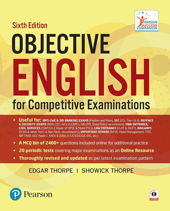Objective English for Competitive Examination by Edgar and Showick Thorpe is an invaluable resource for anyone preparing for competitive exams in English. It equips students with the necessary tools and strategies to tackle a variety of question types, from subjective answers to MCQs, and provides comprehensive coverage of the language skills required for academic and professional success. Whether preparing for a lecturer role, competitive exams, or interviews, this book is designed to enhance learning and improve performance, making it an essential part of any aspirant's study plan.