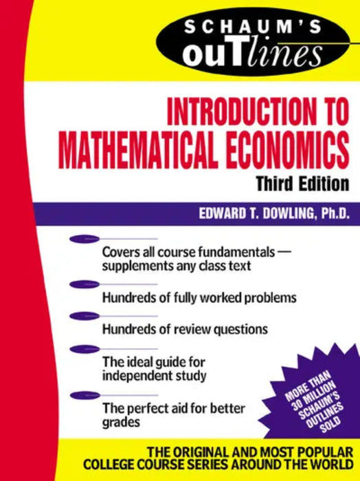 Edward T. Dowling’s Schaum's Outlines offers a structured and practice-oriented approach to learning mathematical economics. With clear explanations and extensive problem sets, it helps students build confidence and achieve academic success in economics and related fields.